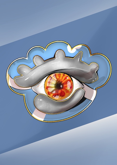 Промпт: логотип эмблема глаз с серебряными абстрактными ресницами, золотистыми очертаниями, используй в дизайне белый крест на голубом фоне.