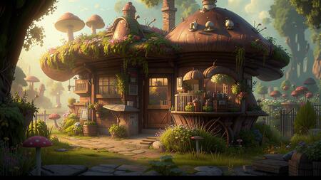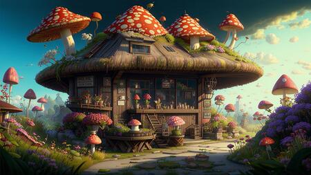 Промпт: экстерьер ателье где изготавливаются грибные шляпы