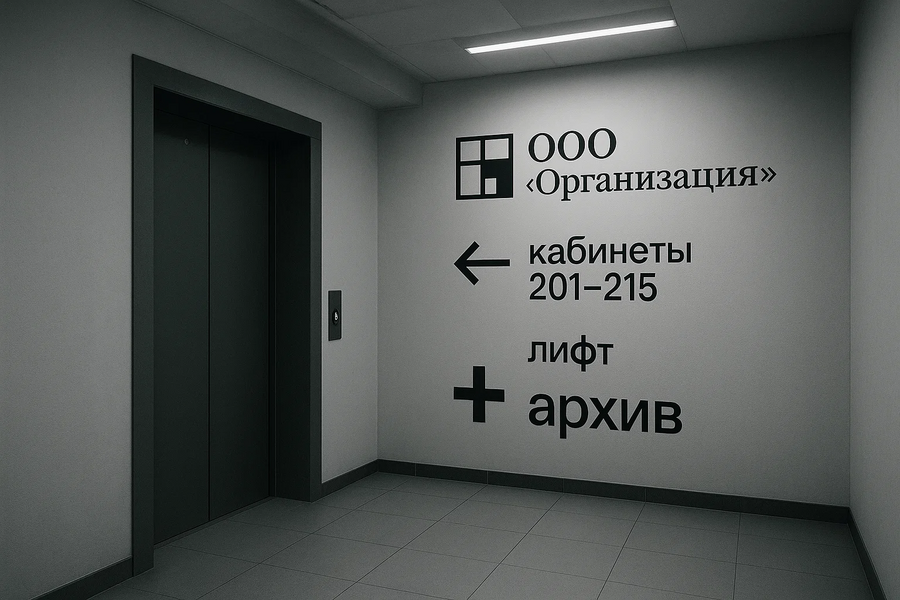 /image prompt: create a corporate identity for a company called ООО «Организация» that trains people to work in the office. minimalism style, strictness, restraint, conservatism.