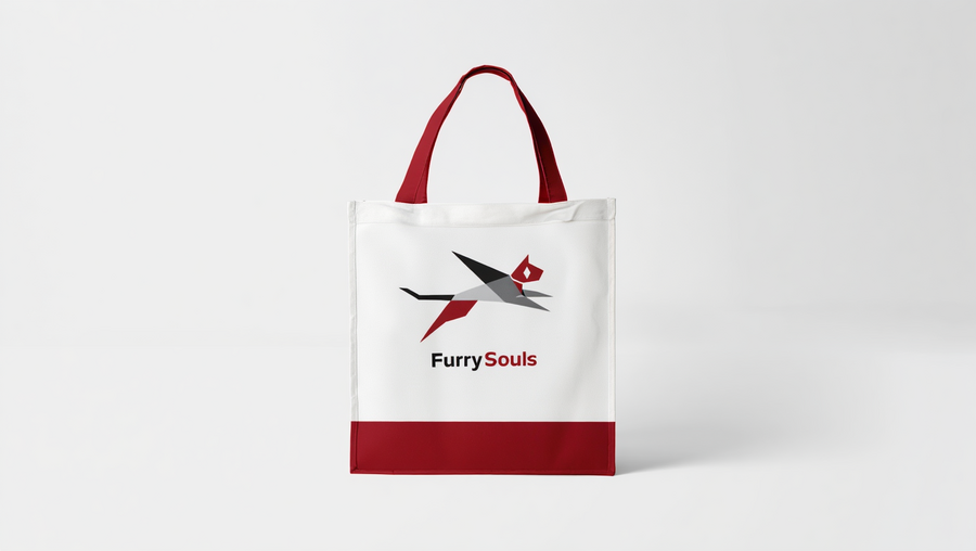 Промт для сумки: Create an image of a white tote bag with red accents, logo and name on a white background.