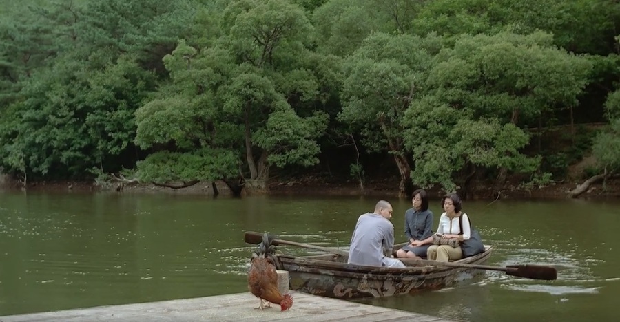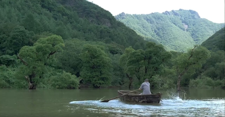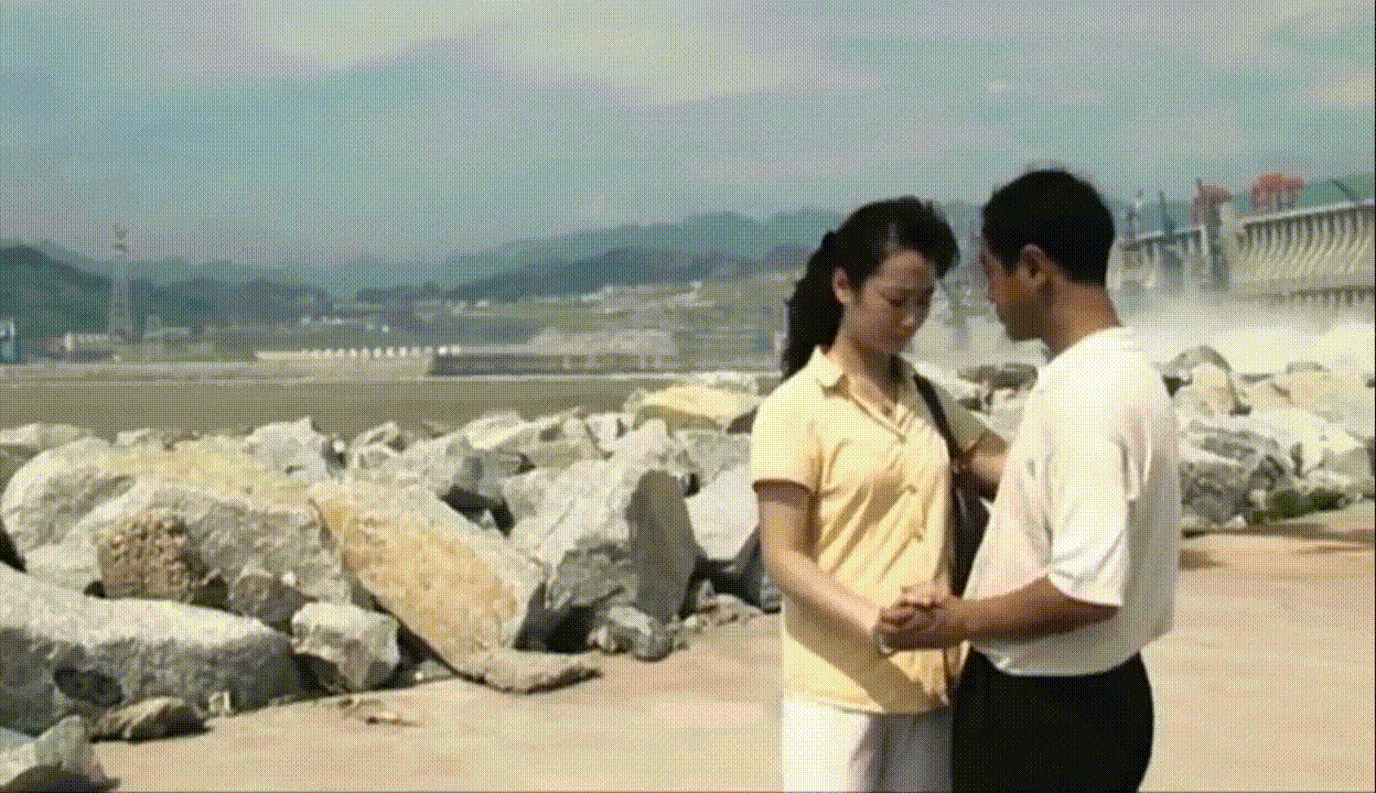 Шэнь Хун, встретив долго разыскиваемого мужа, кружится с ним в медленном танец на фоне реки. Их хрупкое воссоединение визуально поддерживает плавное движение камеры и природный фон. Однако этот миг разрушается, когда траектория танца выводит пару точку, где фоном становится гигантская плотина. Монолит сооружения оказывается ровно между персонажами и в этот момент происходит объявление о разрыве отношений.