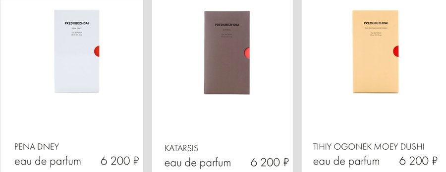 Скриншот продукции, сделанный на официальном сайте бренда PREDUBEZHDAI
