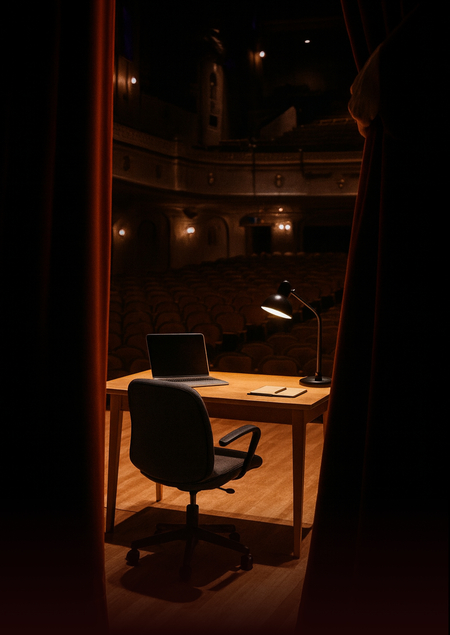 Если рекламная коммуникация бренда «С чистого стола» будет строиться преимущественно на метафорическом подходе, где порядок и фокус представлены через яркие художественные образы — сцену, прожектор, момент выхода героя — это позволит точнее раскрыть сущность продукта как инструмента мгновенного перехода в рабочее состояние. Визуальная идея «пользователь — главный герой, хаос — массовка, а стол — сцена» создаёт эмоциональный контраст между беспорядком и состоянием ясности, подчёркивая, что порядок — это не про уборку, а про возможность занять своё место в центре внимания и начать действовать.