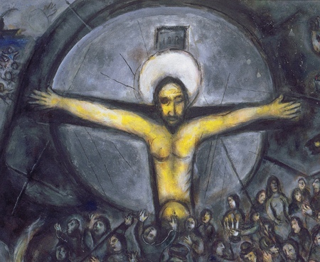 Тема распятия и образ Иисуса Христа занимают значимое место в творчестве Шагала. Эти мотивы проникнуты гуманизмом, жертвенностью, страданьем и тревогой. Христос у Шагала — всегда жертва и спаситель. Художник усиливает это ощущение выразительными композиционными и цветовыми решениями.
