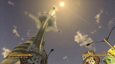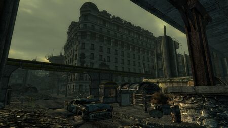 Когда игрок выходит из Убежища, его встречает не просто разрушенный мир, а мир, в котором обломки будущего стали частью пейзажа. Небоскребы в стиле модерн с облупленными фасадами, гигантские рекламные щиты с рекламой в духе 50-60 годов, ржавые кузова автомобилей с атомными двигателями, футуристические монорельсы, ведущие в никуда. Особенность Fallout в том, что его руины не просто пустынны — они ироничны и трагичны одновременно. Реклама, обещавшая «город будущего», висит над грудой обломков; просторный зал вокзала, спроектированный для толп пассажиров, населён лишь ветром и мутантами. Архитектура — уже не живописный символ прошлого, а физическое доказательство тщетности той утопии, которая так и не наступила.