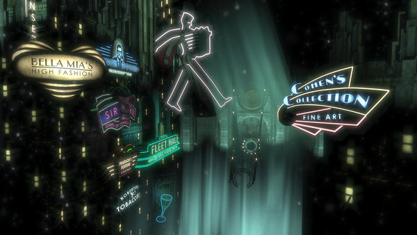 Интересно, что каждая часть серии представляет собой законченный ретрофутуристический тезис. BioShock 1 и 2 — это дизельпанк и ар-деко, воплощение «будущего», каким его видели в конце 1940-х — начале 1950-х: мощь, сталь, латунь, атомная энергия и вера в силу индивидуальной воли. Технологии здесь грубы, основаны на шестернях, паровых трубах и кнопках, а плазмиды — это аллегория на unchecked genetic engineering и потребительское безумие. BioShock Infinite обращается к «эдвардианскому стимпанку» и американской неоклассике, отражая «будущее» в представлениях 1910-х годов: белоснежные монументы, патриотическая символика, яркие краски и вера в божественное провидение и американскую исключительность.