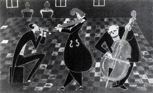 1.Жизнь Человека, эскиз худ. В. Егорова 2.Жизнь Человека (1907). Музыканты, эскиз худ. В. Егорова