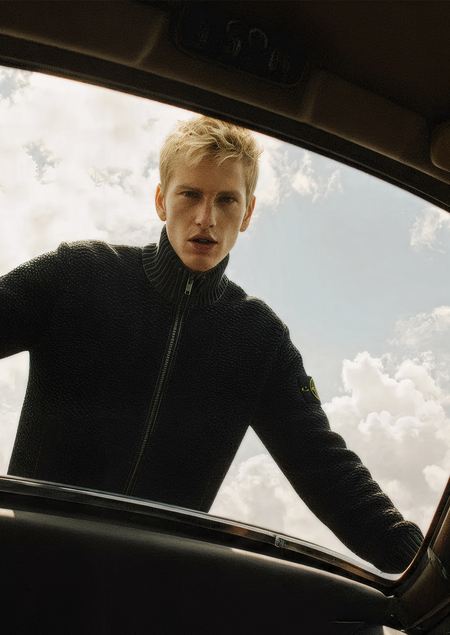 Съёмка сделанная в нейросети для Stone Island в эстетике Формулы-1