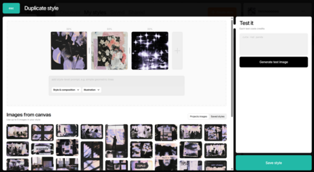 дальше я подобрала три референса, в каком стиле я вижу проект и в Recraft создала свой стиль, чтобы все изображения генерировались на основе референсов