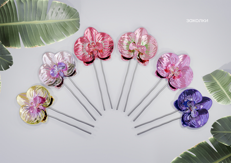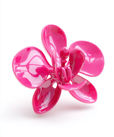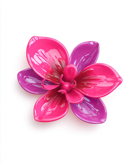 cute cartoon-style 3D model of a tropical orchid hair clip, glossy plastic texture, bright pink and fuchsia petals, stylized petals with simple smooth shapes, exaggerated proportions, isolated on white background, fun and bold accessory design, toy --chaos 10 --ar 5:6 --raw