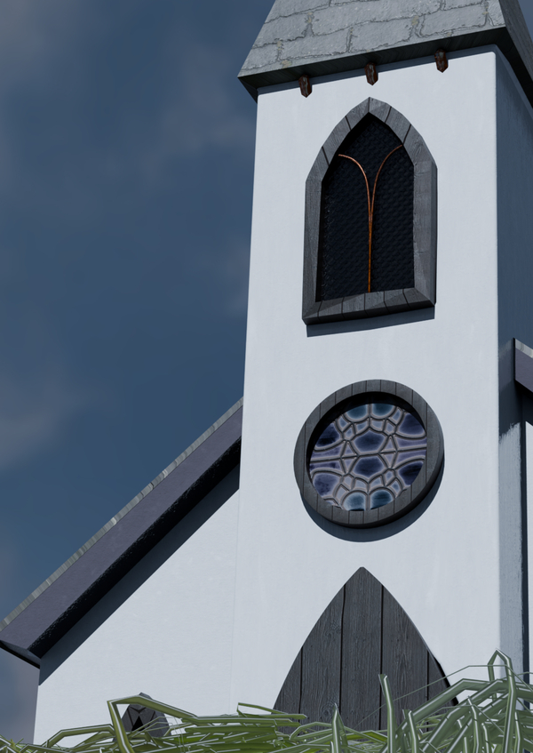 Проект представляет собой 3D-модель маленькой готической церкви, стоящей в одиночестве посреди пустого пространства. Это архитектурная метафора внутреннего света, который сохраняется даже в условиях полной тишины и изоляции.