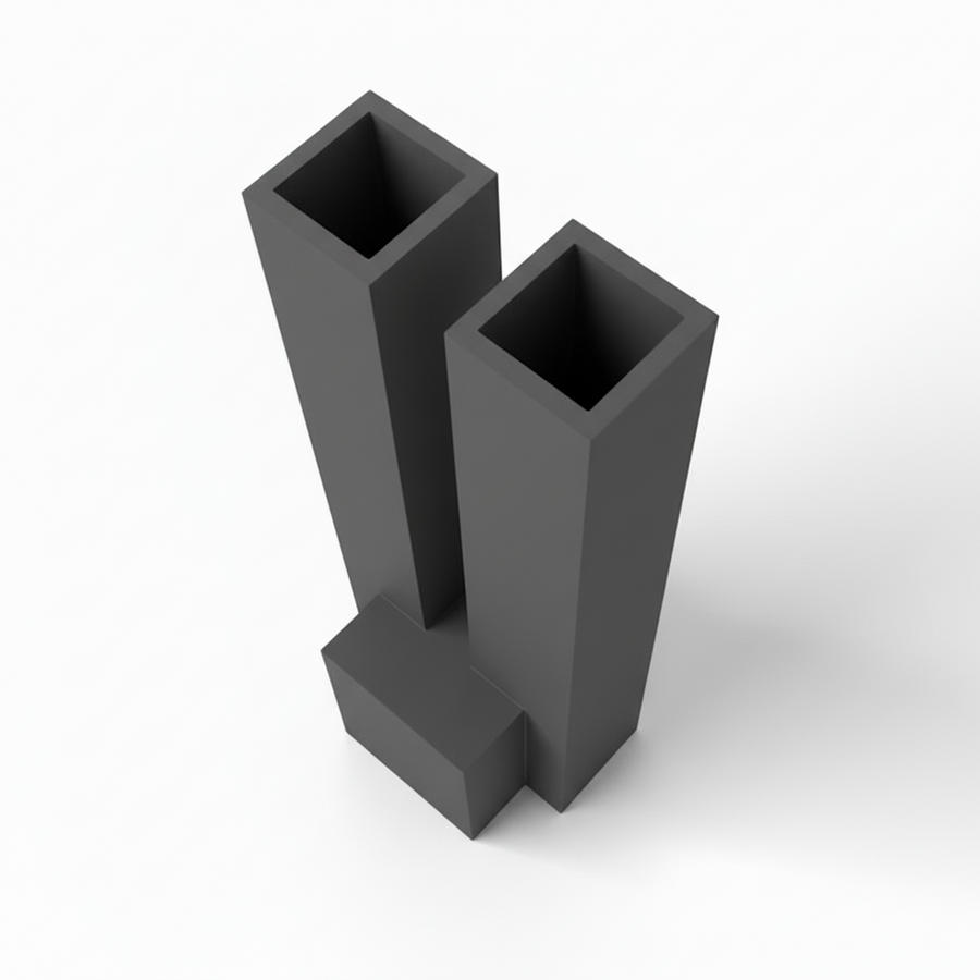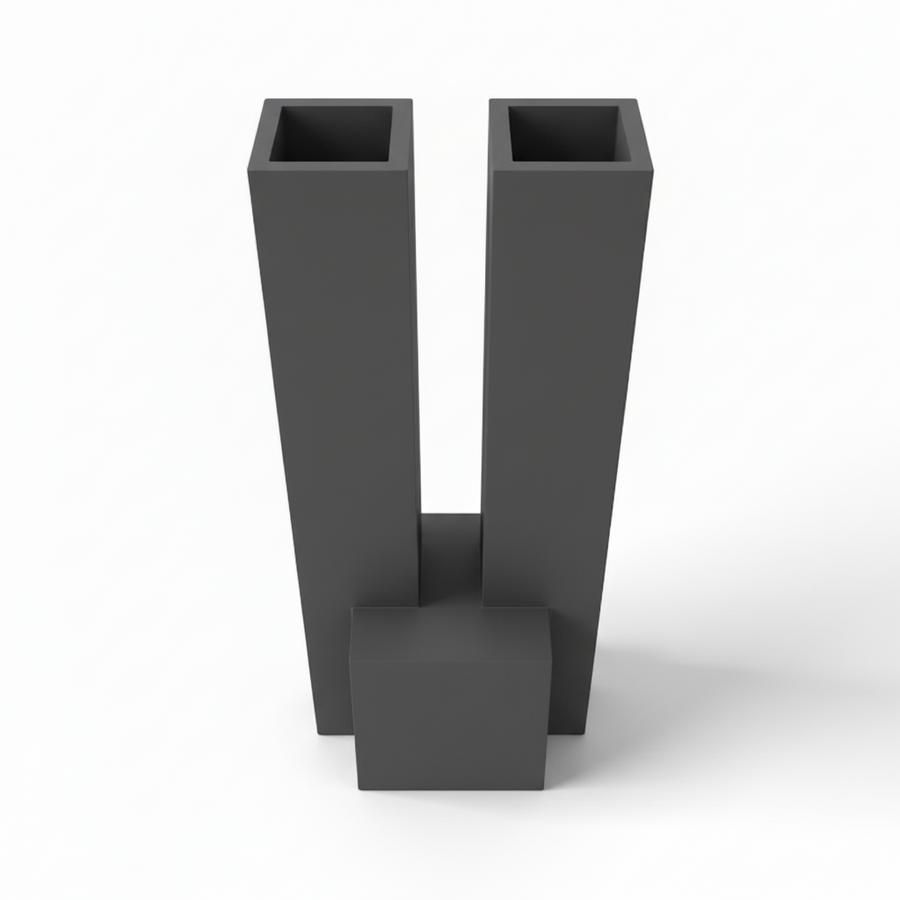 В то же время каждая ваза рассматривается как носитель живого содержимого: строгий геометрический корпус специально спроектирован так, чтобы растительность визуально «вторгалась» в жёсткую структуру и смягчала её. На контрасте между тяжёлой, статичной формой и лёгкими, органичными силуэтами растений возникает визуальное равновесие, которое можно трактовать как модель взаимодействия технологий, прогресса и природной среды в современном городе.