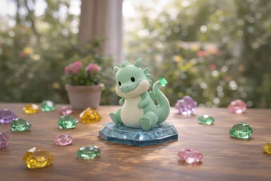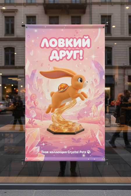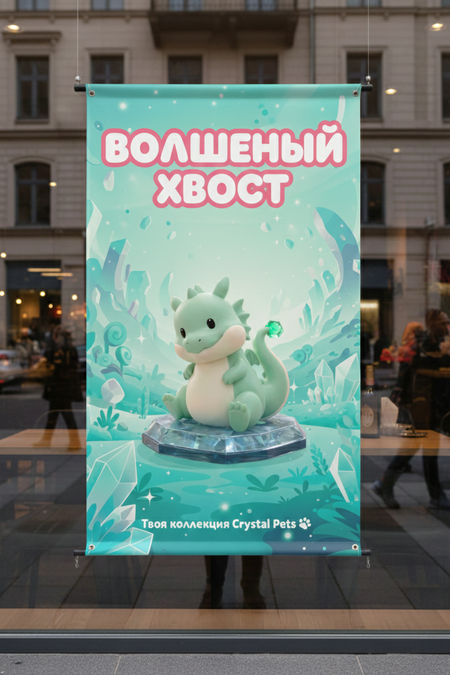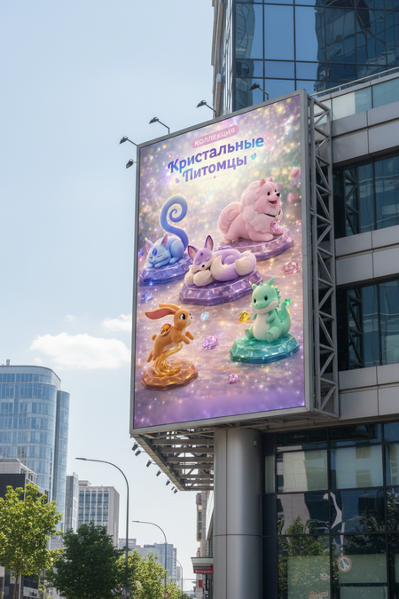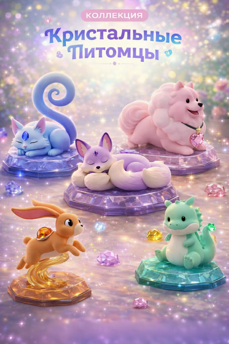 Промо-изображения фигурок и рекламные баннеры создаются в Gemini, с сохранением стилистики коллекции и акцента на «кристальную» эстетику.