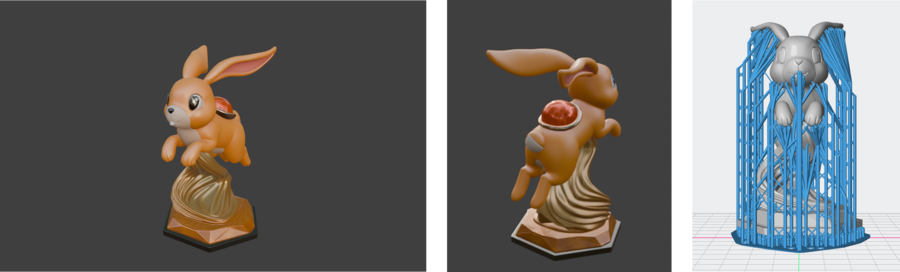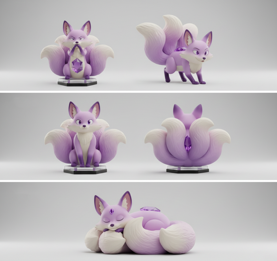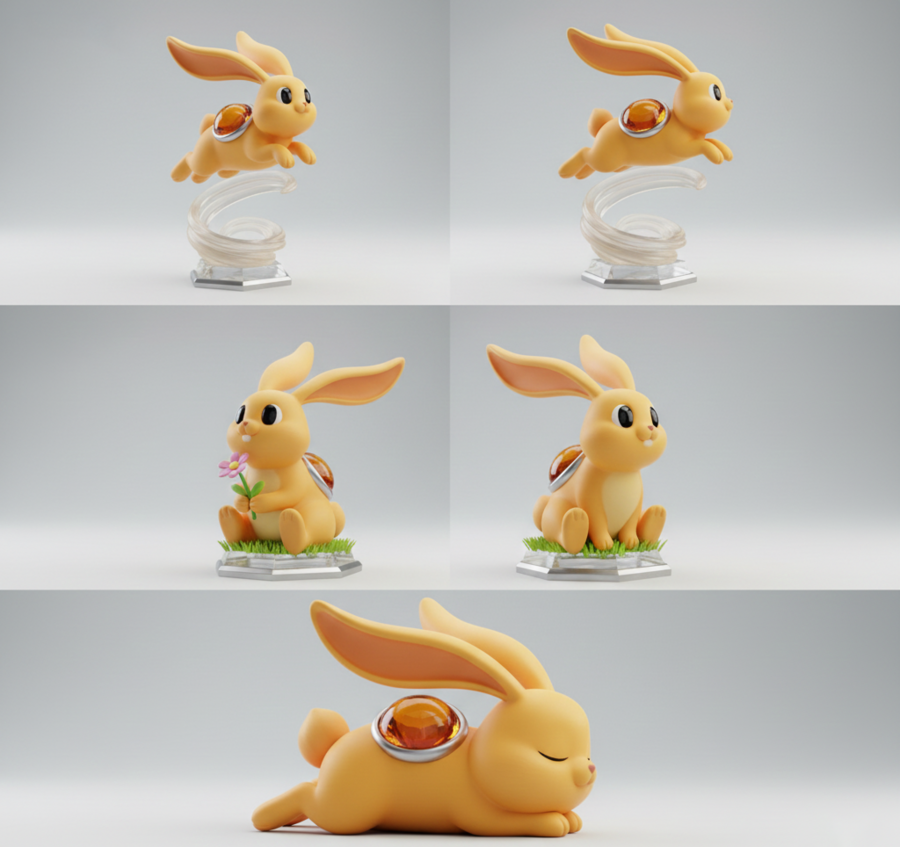 Подготовленные эскизы загружаются в 3D Hunyuan AI, где выполняется генерация объемных моделей персонажей и подставок. Полученные 3D-модели используются как основа для дальнейшей доработки.