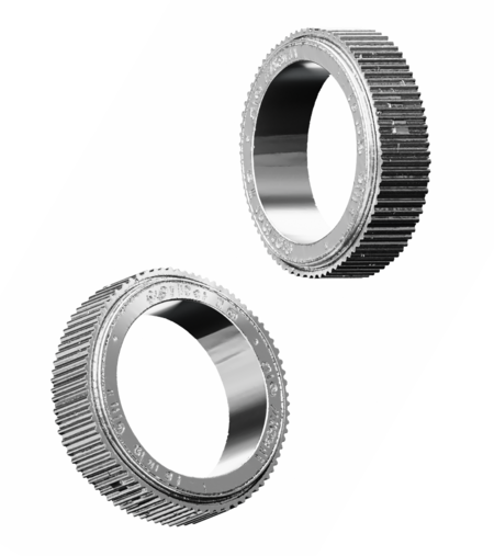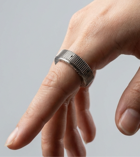 Широкое кольцо с микрорельефом как у фокусного кольца камеры. Может служить антистрессом или открывашкой