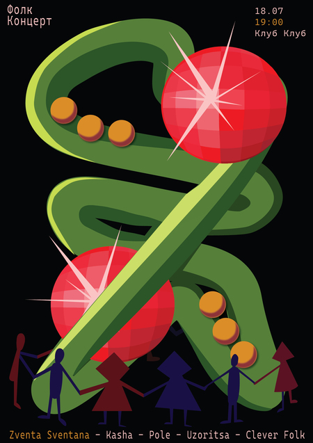 Мероприятие посвящено объединению современной танцевальной музыки и русско- народного творчества. В одном месте собраны современные аутентичные коллективы, которые видят народные истоки в основе своего ДНК. Они переосмысливают народную музыку в разрезе нашей современности и открывают ее для широкого слушателя. Именно симбиоз современной графики и традиционных узоров лег в основу серии плакатов для этого мероприятия.