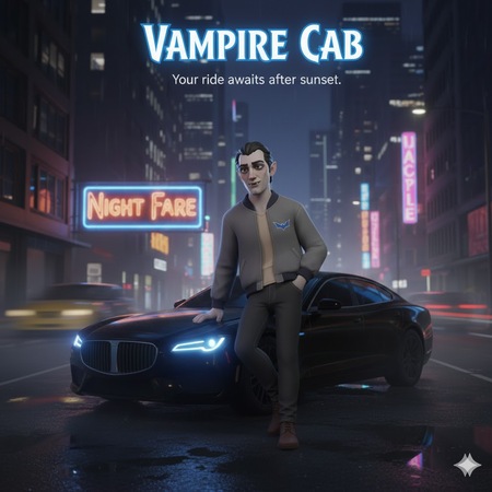 stylized semi-realistic 3D character, consistent art style across entire series, realistic proportions with slight exaggeration, clean readable silhouette, PBR textures, soft neutral color palette with one accent color, modern everyday clothing, fantasy race in contemporary life, full body, centered, neutral A-pose, studio background, soft global illumination, high detail sculpt, clean topology, game-ready, no extreme poses, no dramatic lighting, vampire night taxi driver, pale skin, subtle fangs, casual jacket, holding car keys, tired but polite expression
