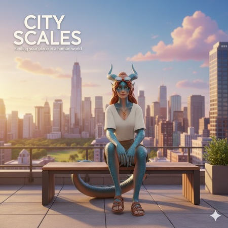 stylized semi-realistic 3D character, consistent art style across entire series, realistic proportions with slight exaggeration, clean readable silhouette, PBR textures, soft neutral color palette with one accent color, modern everyday clothing, fantasy race in contemporary life, full body, centered, neutral A-pose, studio background, soft global illumination, high detail sculpt, clean topology, game-ready, no extreme poses, no dramatic lighting, Female dragon hybrid with casual summer outfit, long tail curled, sunglasses on head, relaxed 3D character model