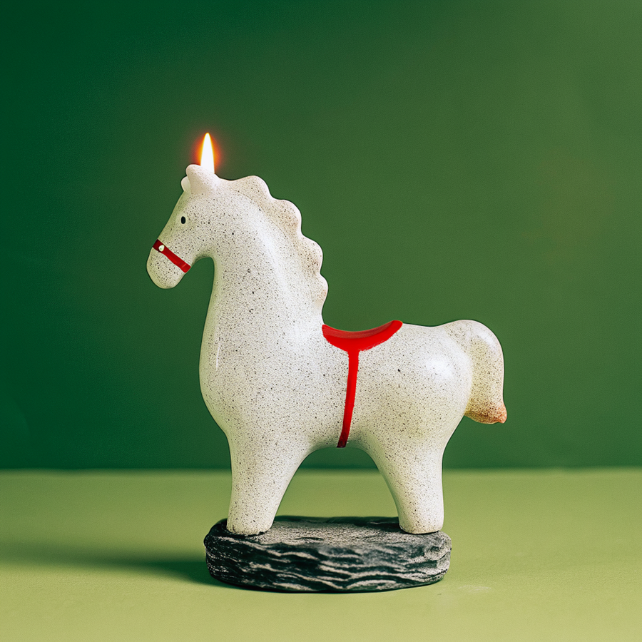Форма свечи в виде лошади: длина около 120–140 мм, высота 90–110 мм.