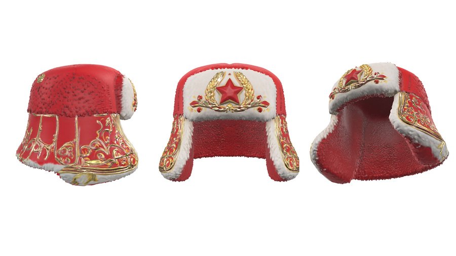 2. Шапка-ушанка Материал: SLA-печать с последующей ручной отделкой под фарфор и перламутр Высота: ~90 мм Ширина: ~ 100 мм Толщина стенок: ≥2,5 мм Цвета: красный цвет основы, прорисовка деталей с использованием золотого/серебряного Поверхность: гладкая, имитация фарфоровой елочной игрушки Крепление: опоры древообразные