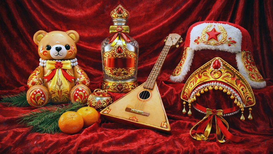 Коллекция «Россия» — это ироничное, праздничное и визуально роскошное переосмысление устойчивых стереотипов о России через язык декоративных 3D-объектов. В основе серии — пять символов, наиболее узнаваемых в международном культурном поле: медведь, балалайка, шапка-ушанка, бутылка водки и кокошник. Эти образы, часто упрощённые и карикатурные в восприятии иностранцев, в коллекции намеренно возводятся в статус артефактов, превращаясь в яркие, почти ювелирные объекты.
