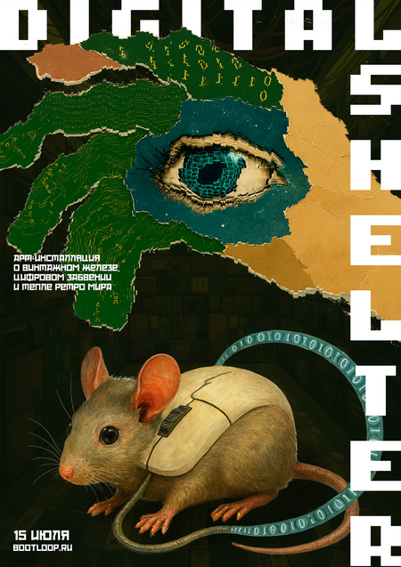 Серия плакатов для арт-выставки о старом оборудовании: музей абсурда, где мышь смотрит на тебя, а лампочка моргает. Не ностальгия, а вызов.