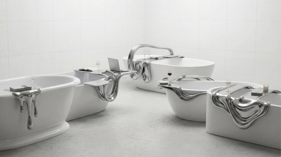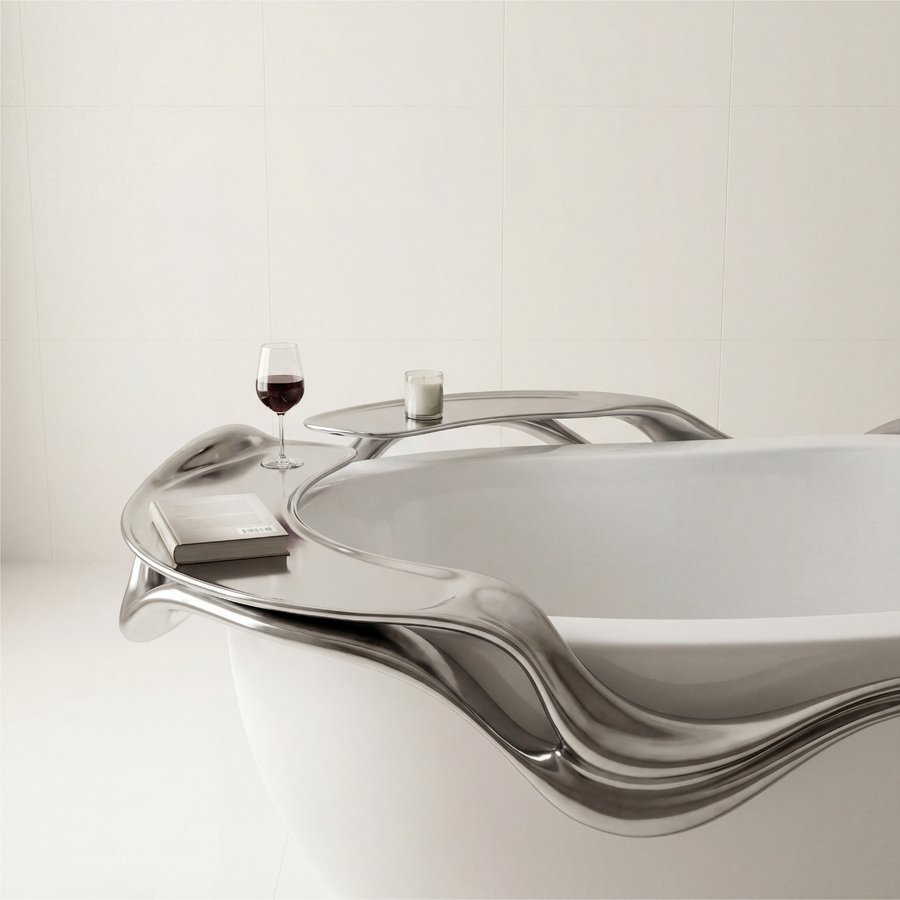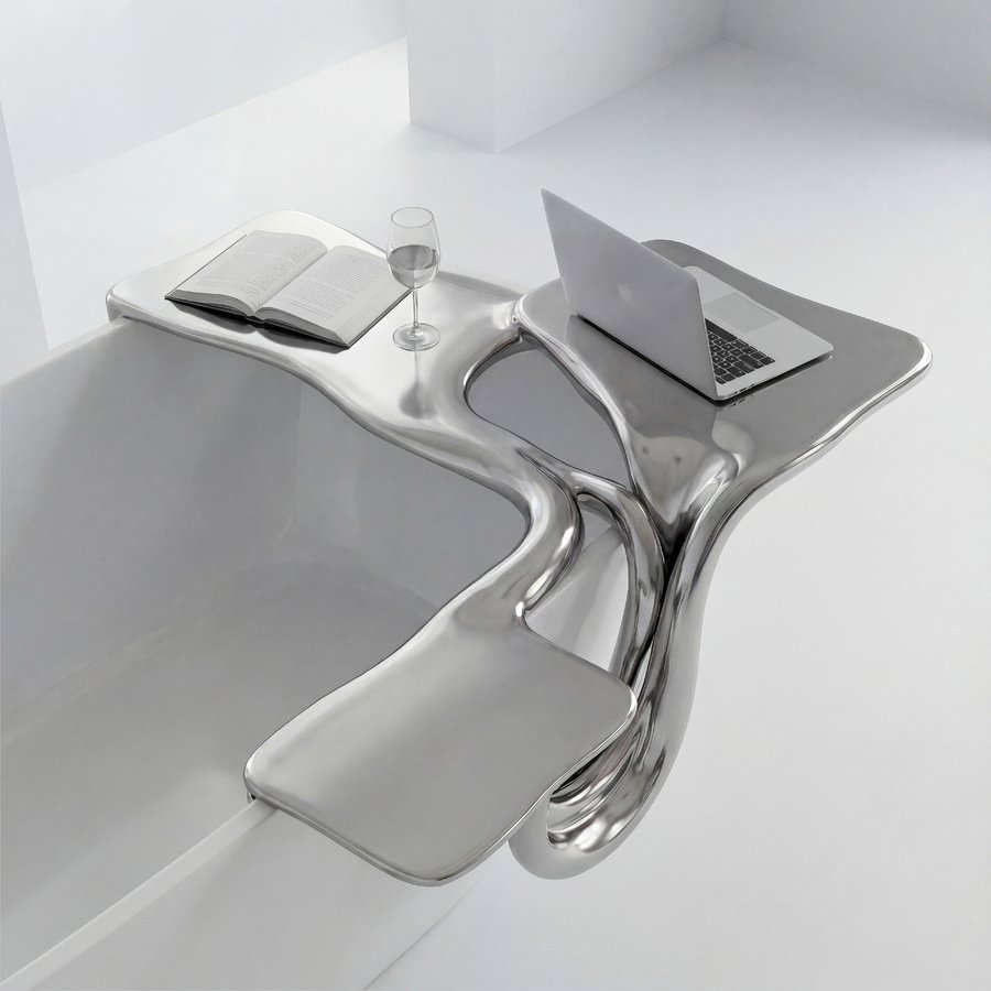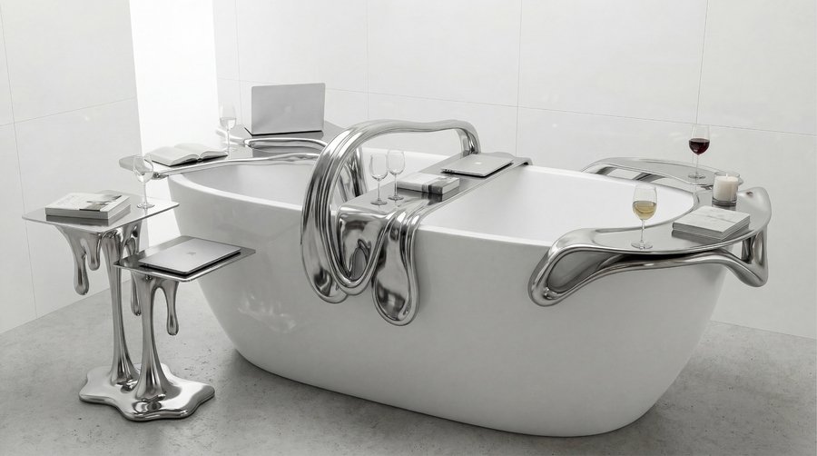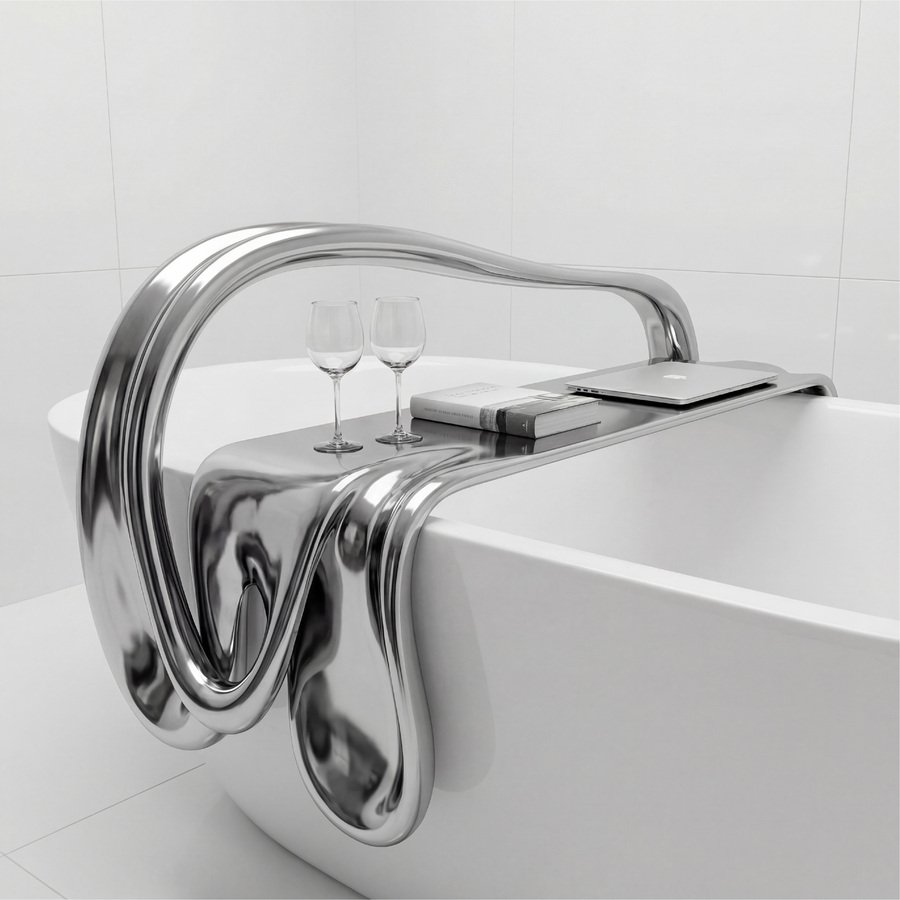 3D-печать превращает концепцию «стекающего металла» из эскиза в осязаемую реальность, где форма диктует функцию, а функция — эмоцию. Это не мебель, а арт-объекты, которые оживают в пространстве ванной, подчёркивая роскошь и динамику.