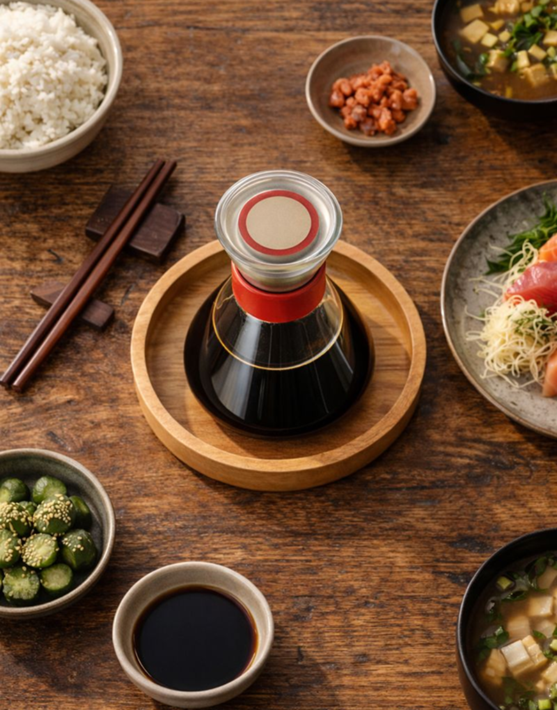 Серия соусниц Shizuku — это коммуникация через форму: каждая версия по-разному объясняет действие (налить / дозировать / закрыть) и делает процесс точным и чистым. Стекло, металл и дерево создают спокойную палитру, а красное кольцо работает как визуальный маркер серии. Предметы выглядят лаконично, но ощущаются детальными и премиальными — как небольшой инструмент для ежедневного ритуала.