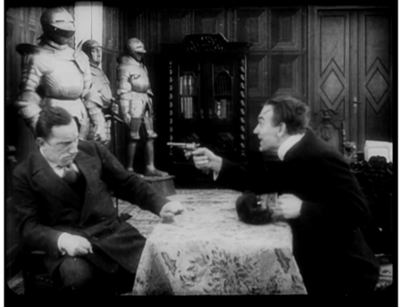 Контрастное освещение, жесткие и выразительные тени (как в кадре с решеткой), нестандартные декорации (как в кадре с трубой в разрезе) и силуэты — всё это будет в фильмах 20-х годов в Германии.