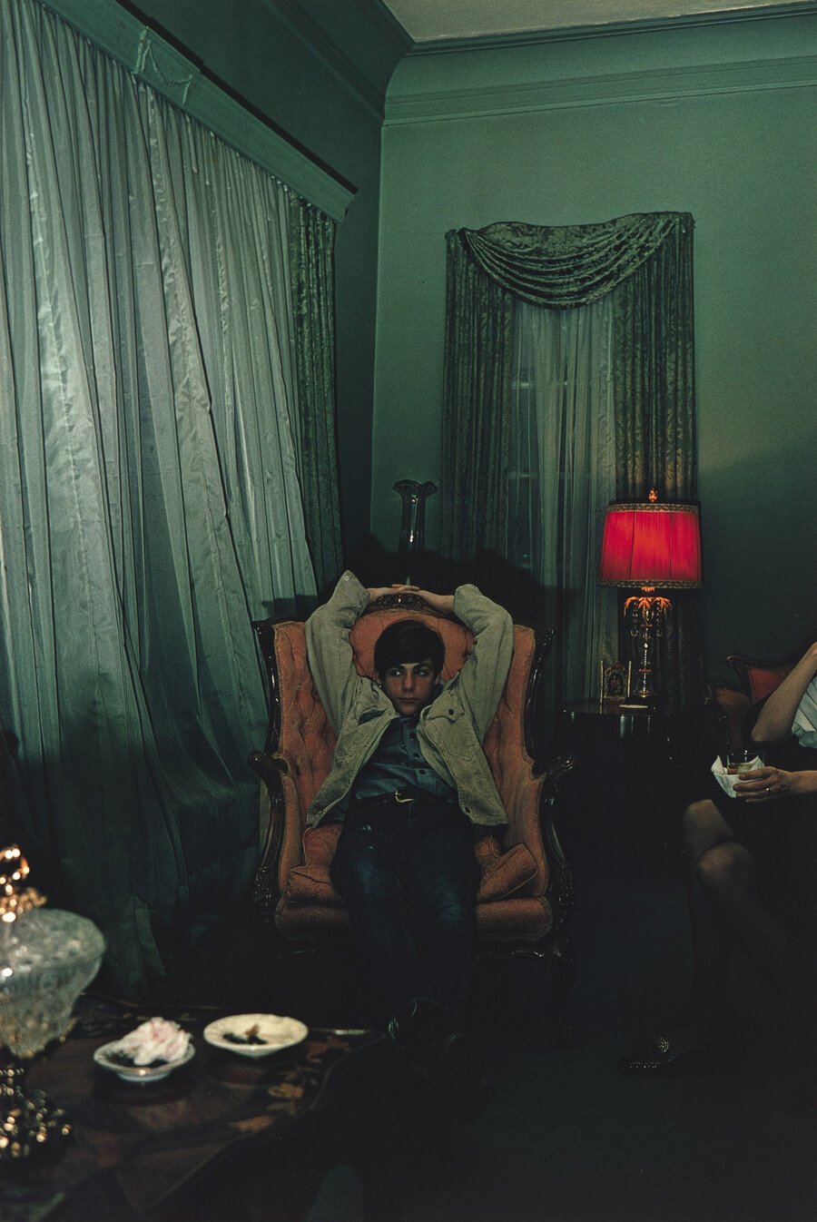 На фотографиях Эглстона люди часто погружены в окружающий контекст и находятся в активном диалоге с пространством вокруг них. Окружение не служит фоном, а становится продолжением портрета, раскрывая личность через предметы, цвета и атмосферу места, внедряя портрет в общую композицию создается единый графический нарратив.