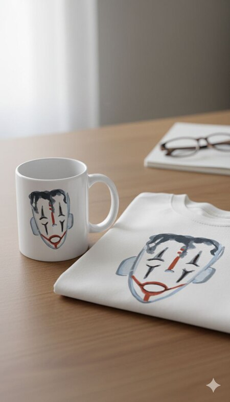 Please create a mascot from the provided image, for example on a mug or a T-shirt. The items should be lying on a table.