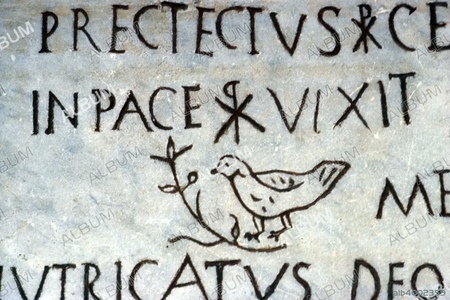 1. Изображение голубя в катакомбах Домитиллы. 3-4 вв. 2. Изображение голубя в катакомбах Рима. 2-4 вв.