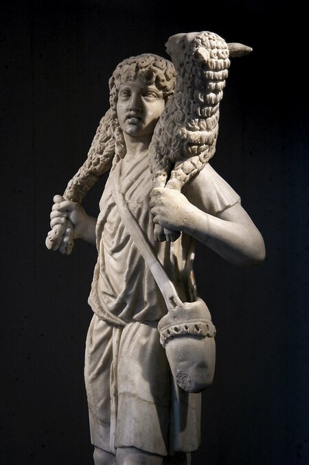 Образ пастыря не менее известен. В Евангелии от Иоанна Иисус прямо называет себя пастырем — «Я есмь пастырь добрый: пастырь добрый полагает жизнь свою за овец». (1)