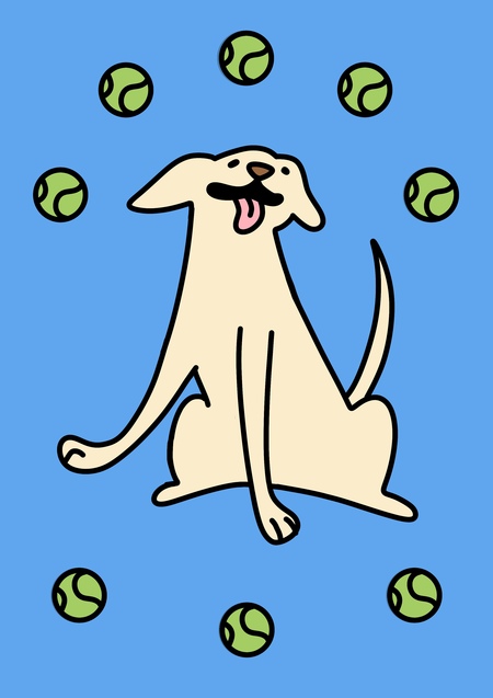 Серия открыток, посвященная выдуманным праздникам для собачьего клуба, куда собак приводят учиться, веселиться и отдыхать.