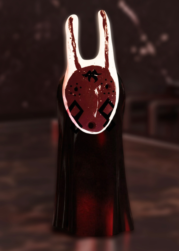 ИИ промт для генерации масок по наброскам: Ceramic mask of animals with red folk patterm and small dot eyes