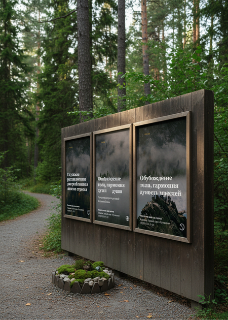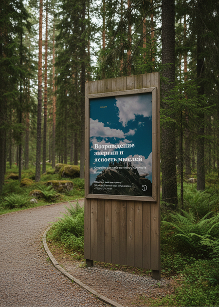 Для создания этих изображений, я попросила нейросеть сгенерировать мокап для плакатов, которые создала в Leonardo.Ai, разместив их среди лесного парка.