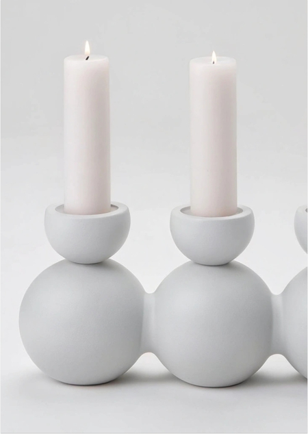 Серия подсвечников, вдохновленных тем, как со свечей стекает воск, каплей за каплей собираясь в маленькие пирамидки из блинчиков. Мягкие, округлые формы и серые тона — универсальный атрибут уюта для дома.
