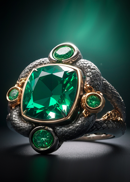 - Объект должен быть точной копией представленного 3D-моделя кольца с детализированной фактурой змеи и вставками под камни. - Модель подготовлена для 3D-печати.