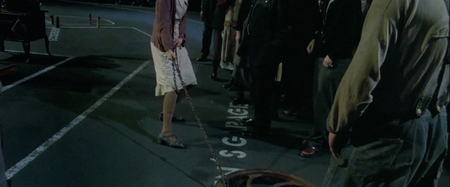 Сравнительный анализ сцены первого наказания демонстрирует, как фон Триер трансформирует лаконичный текст сценария в сложную социальную метафору. Если литературный источник ограничивается сухой констатацией: «Том сказал, что полиция ищет Грейс. Чак потребовал, чтобы она работала больше за молчание. Грейс согласилась», — то в фильме этот эпизод становится мощным визуальным исследованием механизмов коллективного насилия. Режиссер детально показывает процесс социальной перестройки: через крупные планы испуганного лица Грейс и удовлетворенные лица жителей, через контраст между ее физической хрупкостью и внезапно обретенной массовостью общины. Важнейшим отличием становится использование звукового ряда — нарастающий гул и металлический скреп будущей цепи создают атмосферу неотвратимости, тогда как в сценарии эти элементы отсутствуют. Именно через эти кинематографические средства фон Триер раскрывает главную мысль: смена объявления служит не просто сюжетным толчком, а социальным разрешением на насилие, обнажая истинную природу коллективной морали, которая оказывается производной от внешних институтов власти, а не внутренних убеждений.