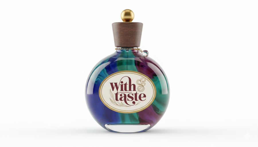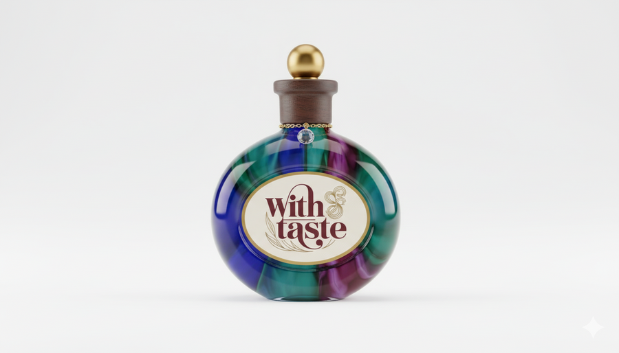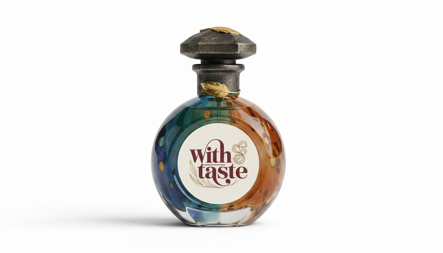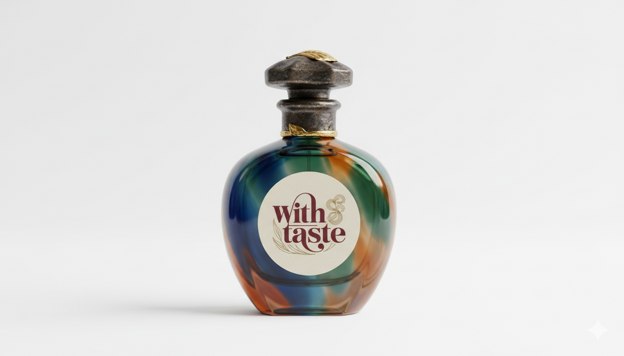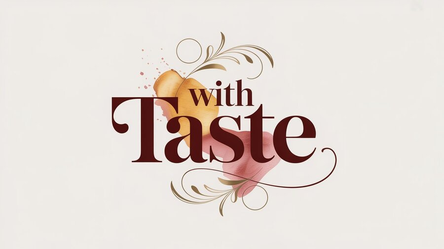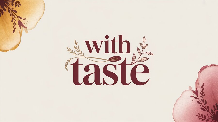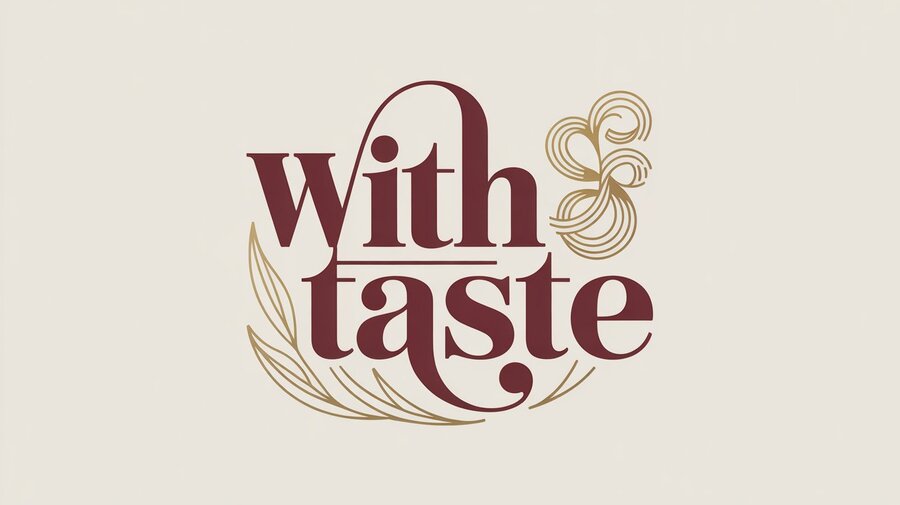 логотип был создан в Ideogram.ai промт: Generate a logotype for perfumes for food named: with taste, the colors should be red and beige