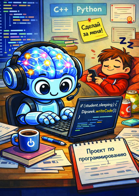 Описание применения генеративной модели: Код и текст презентации сгенерированы с помощью Deepseek https://www.deepseek.com/ Обложка сделана в ChatGpt5 по запросу: нарисуй двумерную мультяшную картинку, где персонаж-нейросеть Дипсик пишет проект по програмированию за студента https://chatgpt.com/
