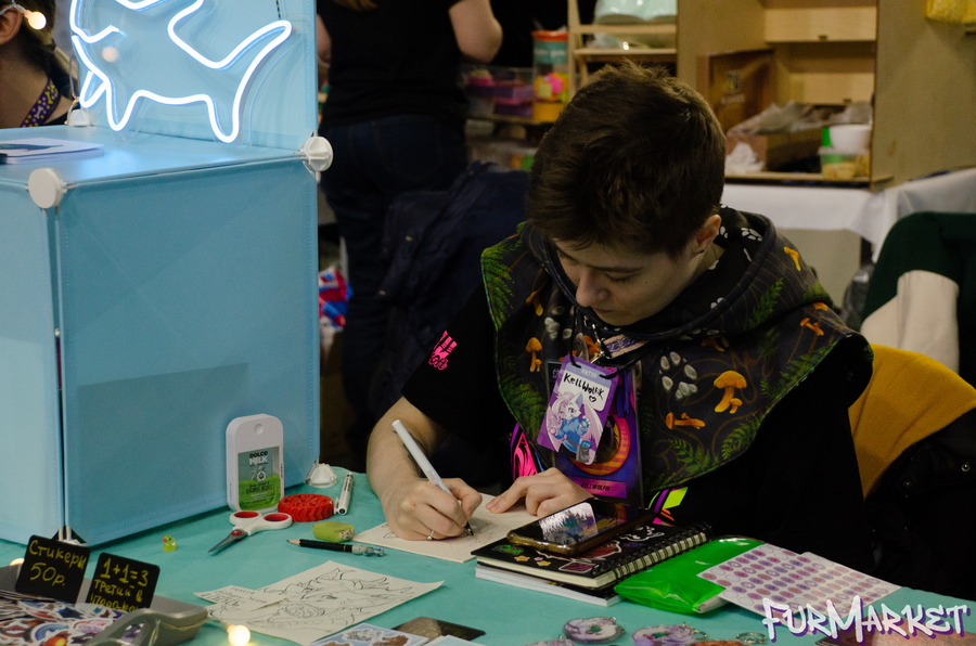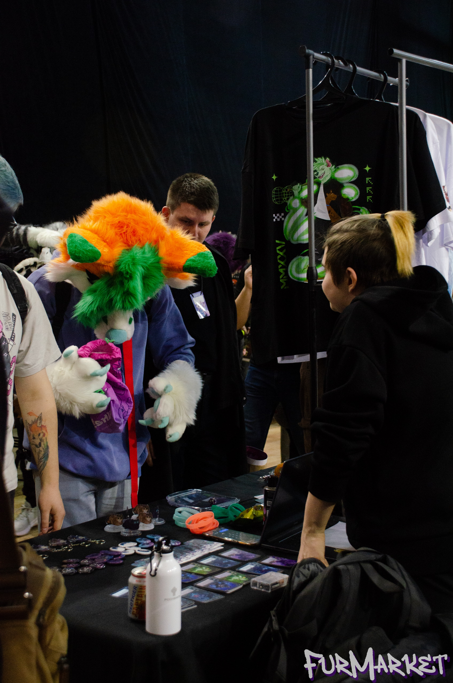 Пример фурри-атрибутики. Стенд на Furmarket 2025. Автор: Daemoniacus Studio