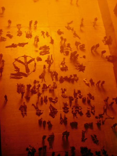 Одна из самых легендарных инсталляций XXI века. В турбинном зале художник покрыл потолок зеркалами и установил огромное «солнце» из ламп монохромного света. Зрители лежали на полу и наблюдали за своим отражением, которое сливалось с золотым небом. Они ощущали эмоциональное тепло от присутствия других людей, а свет был медиатором.