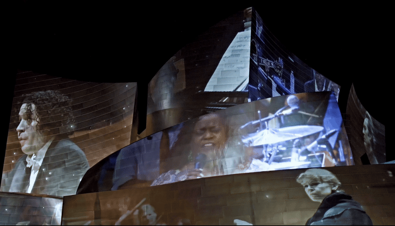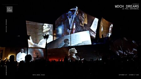 На фасаде концертного зала Дисней алгоритм показывал свои воспоминания, которые были основаны на архивах концертного зала, его звуковые записи, афиши и тексты. Архитектура стала живым существом, а свет стал соединительным инструментом между памятью алгоритма и зданием.