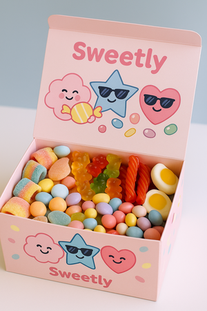 Sweetly — добрый магазин детских сладостей, где всё мило, понятно ребёнку и спокойно для родителей. В качестве маскотов магазина используются маскоты из оригинального проекта.