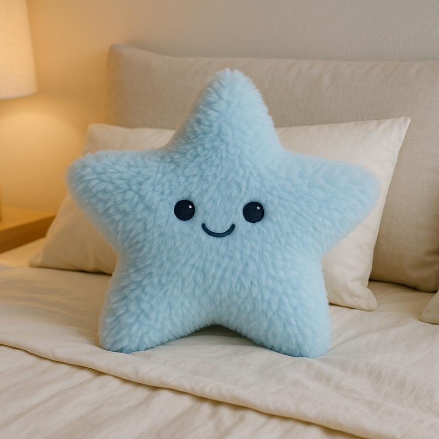 2. Сгенерируй большую и пушистую подушку для обнимашек в виде маскота — голубая звезда.