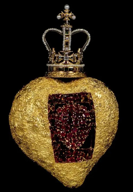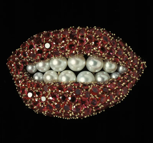 «Рубиновые губы», Сальвадор Дали, 1949, рубины, жемчуг «Королевское сердце», Сальвадор Дали, 1953, золото, рубины, сапфиры, изумруды, аквамарины, хризолит, гранаты, аметист, жемчуг