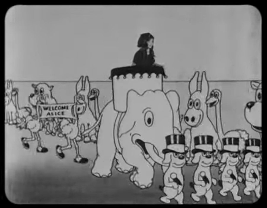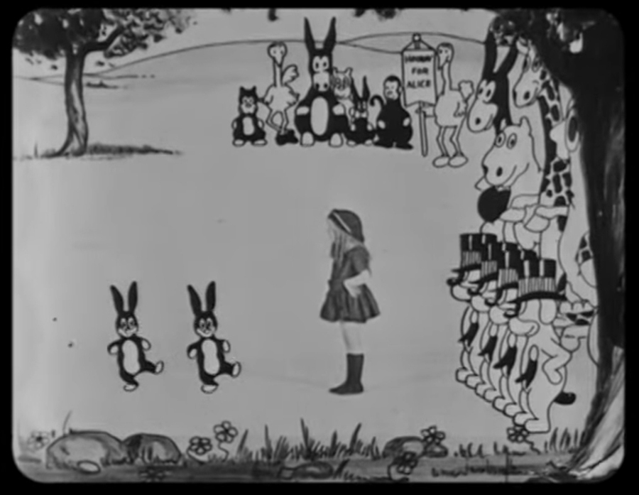 В творчестве Уолт Диснея, известного всему миру анимационными фильмами о Микки Маусе, также можно найти эксперименты с искажением реальности. Одна из первых работ студии Диснея сочетает в себе игровое кино и анимацию. В нем девочка по имени Алиса засыпает и попадает в странный сюрреалистичный мир. Этот сюжет отсылает зрителя к сказке Льюиса Кэрролла «Алиса в стране чудес», а также раскрывает природу анимации как искусства, соседствующего с миром сновидений.
