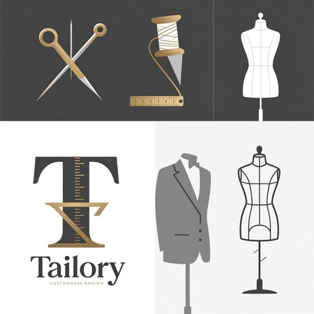 Generate a series of logo concepts for «Tailory,» a brand specializing in bespoke, custom-made mannequins and perfect-fit tailoring. The logo should embody precision, craftsmanship, individuality, and understated luxury.