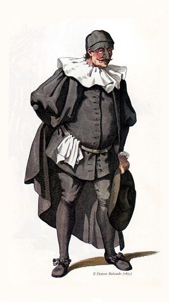 Дотторе — ученый или юрист, который постоянно сыплет бессмысленными цитатами на латыни и псевдонаучными терминами. Он хвастлив, многословен и невежественен, несмотря на свою ученость.